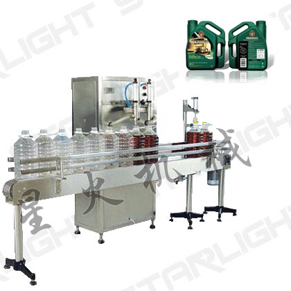 該機是我公司根據潤滑油的特性特別定制的灌裝機,可灌裝機油類、潤滑油、齒輪油、柴油等等。油類灌裝機樣品:
