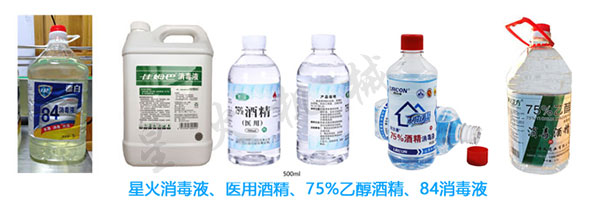 星火84消毒液、消毒水灌裝流水線廠家研發(fā)消毒液自動灌裝流水線灌裝樣品