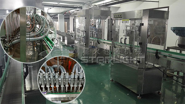 4、星火全自動免洗洗手液生產流水線采用智能雙流速灌裝技術,灌裝前期高流速灌裝,后期低流速灌裝, 杜絕泡沫冒溢;
