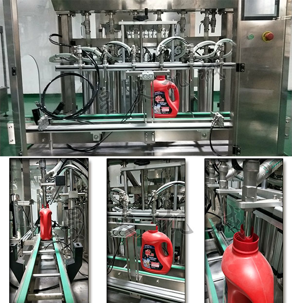 星火全自動洗衣液灌裝流水線廠家廠房展示洗衣液自動化灌裝流水線灌裝細節