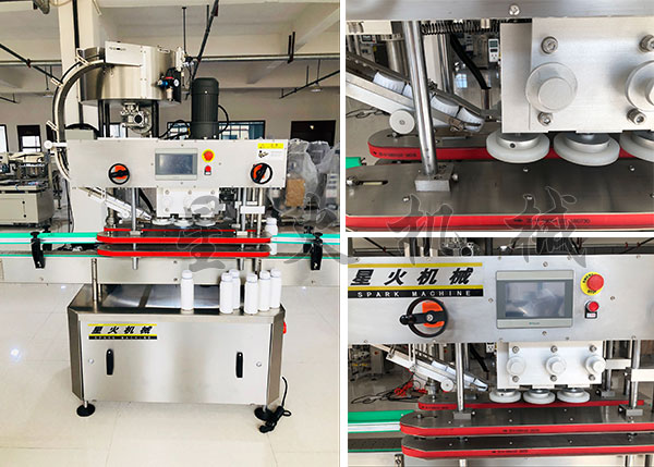 2、星火機械研發灌裝設備灌裝時密封瓶口,液體沿瓶壁下流,有效控制了灌裝時液體沖擊引起的泡沫,防止液體外溢。