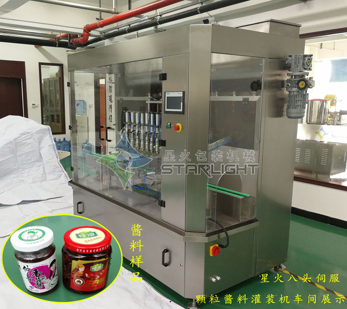 第96屆糖酒會(huì)上星火八頭伺服辣椒醬灌裝機(jī)的亮相: