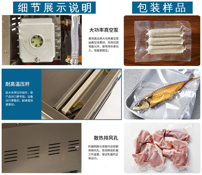 單室雙封口食品真空包裝機性能特點: