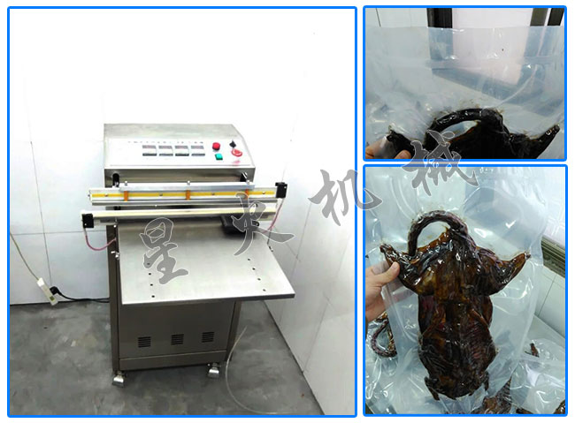 在選擇外抽式真空包裝機時,不應單純按型號去選取機型,通俗講:由于各個用戶所生產的食品(包裝物)不盡相同,包裝尺寸不盡一樣,真空包裝的技術等級要求不同,工作效率的要求不同(產量大小等),而應根據用戶自己產品的特點(包括:液體、固體、粉末、膠狀、半液體、醬腌制品、肉類熟食、海產品等)、包裝袋尺寸的大小(包括:袋口寬度、袋縱向長度、裝好物品后的高度(厚度)來最終確定何種機型是適合于該用戶使用。)用戶確定機型的主要依據是該包裝機的封口長度,雙排間距、真空室最大可利用高度、整機生產效率高低等等。外抽式真空包裝機需要氣源,在購買時請注意!