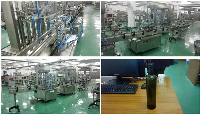 由四頭灌裝機的料桶倒入橄欖油,該機完成四頭同時瓶的灌裝,完成后的瓶子進入下一工序,由自動旋蓋機對瓶子進行上蓋、鎖蓋工作,完成后流入下一工序,由自動圓瓶貼標機對瓶子進行貼標,到此整個生產工序完成。